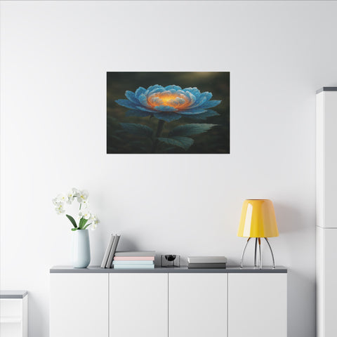 The Glucorus Bloom stands as a radiant embodiment of emotional alchemy. Each crystalline petal opens in sapphire tones, drawing light into its fiery golden core. Known in the Codex of Prosius as the Solitary Flame, this rare bloom resonates with frequencies of cleansing and renewal, transmuting stagnant energy into clarity and flow. Hanging in quiet stillness, it symbolizes resilience, transformation, and the inner fire that carries one through times of shadow.